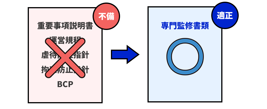 状況によりますが、直前でも“やるべき優先順位”を整理して、短期間での改善に対応できます。まずは「指導予定日」「指導通知の有無」「指摘が不安な論点(加算・記録・重要事項など)」を教えてください。限られた時間でも、当日見られやすいポイントから整えます。